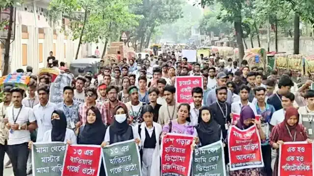 ছয় দফা দাবি আদায়ে সরকারকে ৪৮ ঘণ্টার আল্টিমেটাম দিয়েছেন পলিটেকনিক ইনস্টিটিউটের আন্দোলনরত শিক্ষার্থীরা।