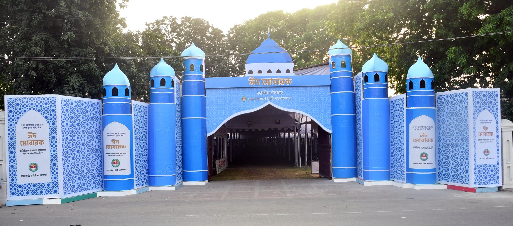 ঈদ জামাতের জন্য সম্পূর্ণ প্রস্তুত হাইকোর্ট সংলগ্ন জাতীয় ঈদগাহ মাঠ। সেখানে একসঙ্গে প্রায় ৩৫ হাজার মানুষের নামাজ পড়ার ব্যবস্থা করেছে ঢাকা দক্ষিণ সিটি কর্পোরেশন। প্রধান ঈদ জামাত ঘিরে কয়েক স্তরের নিরাপত্তার ব্যবস্থা করা হয়েছে।