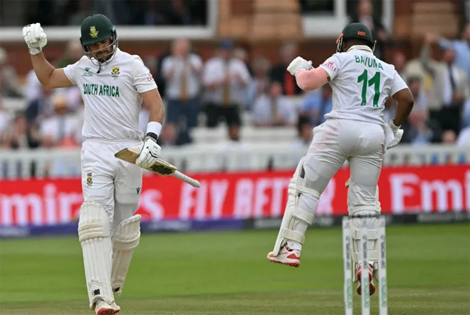 ইতিহাস গড়ে টেস্ট চ‍্যাম্পিয়নশিপের শিরোপা জিতলো দক্ষিণ আফ্রিকা। লর্ডসে অস্ট্রেলিয়াকে ৫ উইকেটে হারিয়ে বিশ্ব টেস্ট চ‍্যাম্পিয়নশিপের শিরোপা ঘরে তুললো প্রোটিয়ারা।