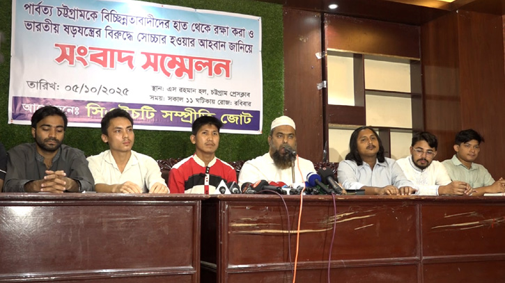 ভারতের সহযোগিতায় ইউপিডিএফ ও জেএসএস পার্বত্য চট্টগ্রামকে বাংলাদেশের মূল ভূখণ্ড থেকে বিচ্ছিন্ন করার ষড়যন্ত্র চালাচ্ছে বলে অভিযোগ করেছে ‘সিএইচটি সম্প্রীতি জোট’। রবিবার চট্টগ্রাম প্রেসক্লাবে পার্বত্য চট্টগ্রামকে বিচ্ছিন্নতাবাদীদের হাত থেকে রক্ষা করা এবং ভারতীয় ষড়যন্ত্রের বিরুদ্ধে সোচ্চার হওয়ার আহ্বান শীর্ষক সংবাদ সম্মেলনে এসব কথা বলেন সিএইচটি সম্প্রীতি জোটের সমন্বয়ক থোয়াইচিং মং শাক।