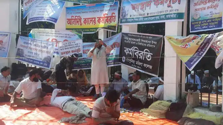 আন্দোলনকারীরা বলেন, শিক্ষকদের দাবি না মেনে সরকার অমানবিকতার দৃষ্টান্ত তৈরি করছে।