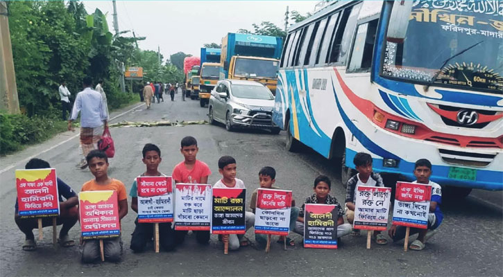 ফরিদপুরের ভাঙ্গা উপজেলার আলগী ও হামিরদী ইউনিয়নকে ফরিদপুর-৪ আসন থেকে ফরিদপুর-২ আসনে অন্তর্ভুক্ত করার প্রতিবাদে অনির্দিষ্টকালের জন্য মহাসড়কে গাছ ফেলে অবরোধ করেছেন স্থানীয় জনতা। এতে করে দক্ষিণ অঞ্চলের অন্তত ২১ জেলার সঙ্গে ঢাকার যান চলাচল আবারও বন্ধ হয়ে গেছে।