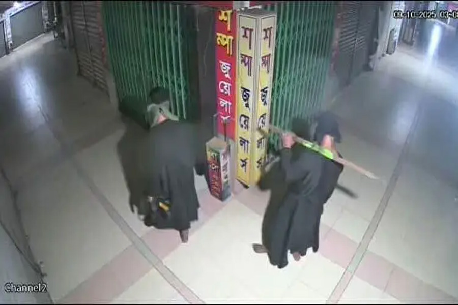 সিসি ক্যামেরায় দেখা গেছে, চোরচক্রের দুজন সদস্য বোরকা পরে এসে জুয়েলারি দোকানটির শাটারের তালা কেটে বিপুল সোনা চুরি করে।
