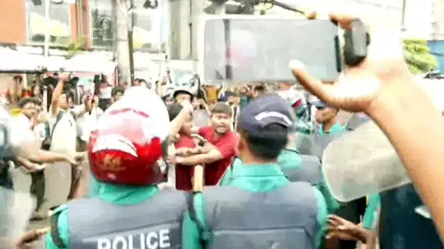 এদিকে বেলা ১১টার দিকে পুলিশ শিক্ষার্থীদের সড়ক থেকে সরিয়ে দিতে বল প্রয়োগ করে। এসময় দুই পক্ষের ধস্তাধস্তিতে বেশ কয়েকজন আহত হয়। পরে কিছু সময় রাস্তায় যান চলাচল স্বাভাবিক হলেও আবারও রাস্তা অবরোধ করেন শিক্ষার্থীরা। এক পর্যায়ের তারা সড়কে বসে ও শুয়ে পড়েন।