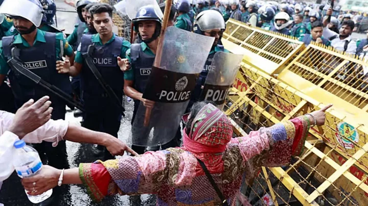একপর্যায়ে তারা ব্যারিকেড ভাঙার চেষ্টা করলে পুলিশের সঙ্গে শিক্ষকদের ধাওয়া-পাল্টা ধাওয়া শুরু হয়। পুলিশ শিক্ষকদের ছত্রভঙ্গ করতে টিয়ারশেল, সাউন্ড গ্রেনেড ও জলকামান ব্যবহার করে। প্রায় আধাঘণ্টা ধরে চলা এই সংঘর্ষে শেষ পর্যন্ত পিছু হয় শিক্ষকরা।