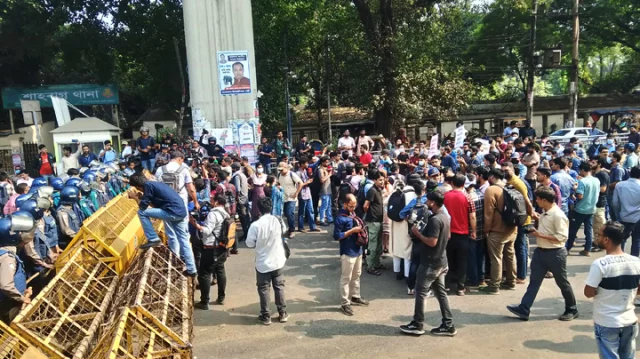 পরিস্থিতি নিয়ন্ত্রণে জলকামান, কাঁটাতারের বেড়ার পাশাপাশি অতিরিক্ত পুলিশ মোতায়েন রয়েছে রাজধানীর শাহবাগ মোড়ে।