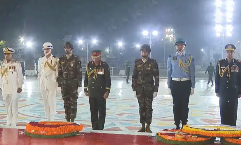 আন্তর্জাতিক মাতৃভাষা ও শহীদ দিবসের প্রথম প্রহরে তিন বাহিনীর প্রধানরা কেন্দ্রীয় শহীদ মিনারে ভাষাশহীদদের প্রতি ফুলেল শ্রদ্ধা নিবেদন করেছেন। শুক্রবার (২০ ফেব্রুয়ারি) দিবাগত রাত ১২টা ১৯ মিনিটে তাঁরা এই শ্রদ্ধা নিবেদন করেন।