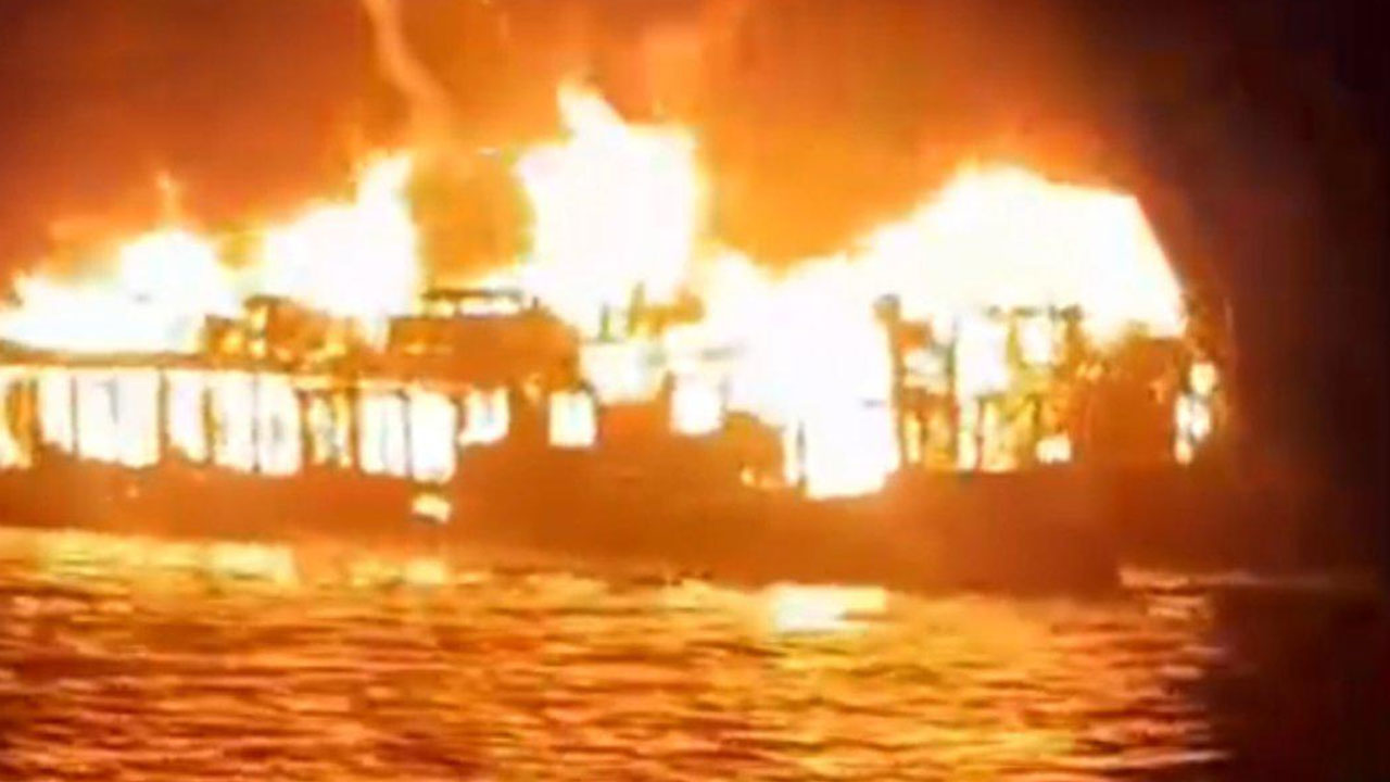 টাঙ্গুয়ার হাওরে পর্যটকবাহী নৌকায় আগুন