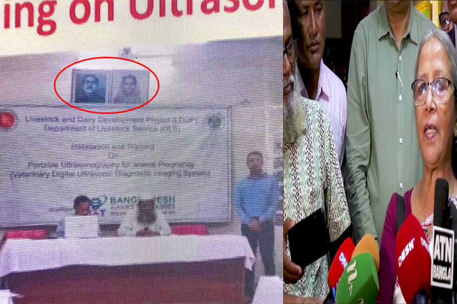 উপদেষ্টার সামনে স্ক্রিনে ভেসে উঠল হাসিনা ও শেখ মুজিবের ছবি