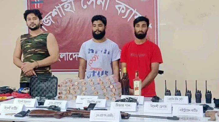 রাজশাহীতে সেনা অভিযান: অস্ত্র–গুলি ও বোমা তৈরির সরঞ্জাম উদ্ধার, আটক তিন