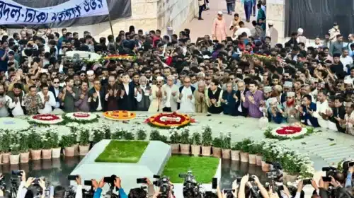 পরে আওয়ামী লীগ সভাপতি হিসেবে দলটির শীর্ষ নেতাদের নিয়ে দ্বিতীয় বার শহীদ মিনারে শ্রদ্ধা নিবেদন করেন শেখ হাসিনা।