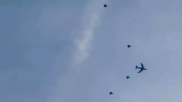 বিবিসির খবরে বলা হয়েছে, এই বিমানগুলোর সাথে একটি জ্বালানির ট্যাংকার বিমানও ছিলো।