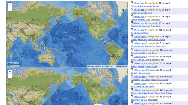গত ২৪ ঘণ্টায় বিশ্বের বিভিন্ন জায়গায় ৯৪টি ভূমিকম্প হয়েছে বলে জানিয়েছে বিশ্বব্যাপী ভূমিকম্পের তথ্য নজরে রাখা জনপ্রিয় ওয়েবসাইট ‘আর্থকোয়াকট্র্যাকার ডটকম’।