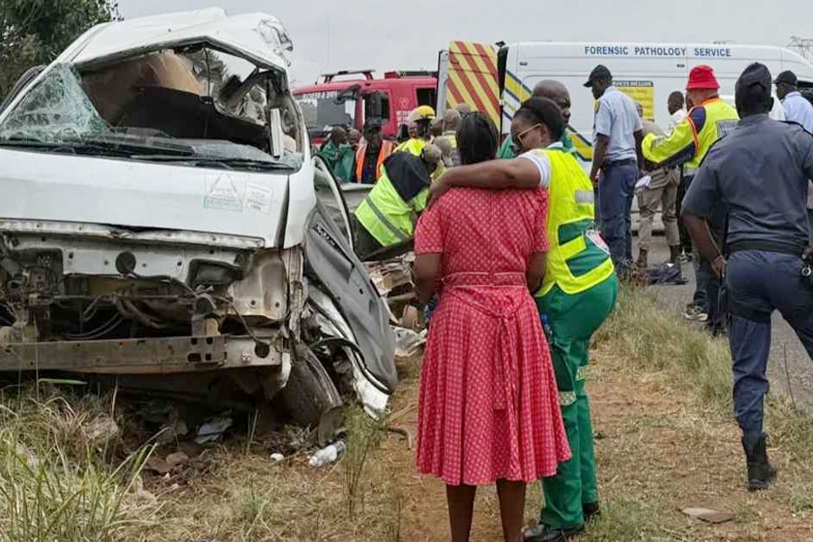 দক্ষিণ আফ্রিকার গাউতেং প্রদেশে ভয়াবহ সড়ক দুর্ঘটনায় অন্তত ১৩ শিশু নিহত হয়েছেন। সোমবার (১৯ জানুয়ারি) সকালে জোহানেসবার্গের দক্ষিণ-পশ্চিমাঞ্চল সেবোকেং এলাকায় একটি স্কুলগামী মিনিবাস ও একটি ট্রাকের মধ্যে সংঘর্ষ ঘটে। স্থানীয় কর্তৃপক্ষ জানিয়েছে, ঘটনাস্থলেই ১১ জন শিক্ষার্থী প্রাণ হারান, পরে হাসপাতালে চিকিৎসাধীন অবস্থায় আরও দুই শিশু মারা যান।