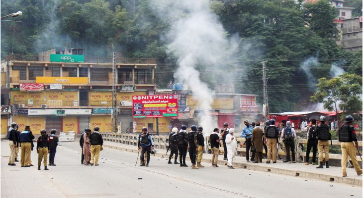 মুজাফফরাবাদে বিক্ষোভের ছবিতে দেখা যায়, বুধবার সেখানকার একটি সেতুর ওপর বিক্ষোভকারীদের লক্ষ্য করে টিয়ার গ্যাস নিক্ষেপ করছে দাঙ্গা-পুলিশ।