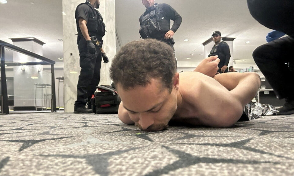 মেট্রোপলিটন পুলিশ বিভাগের ভারপ্রাপ্ত প্রধান জেফরি ক্যারল বলেন, সন্দেহভাজনকে মাটিতে ফেলে হাতকড়া পরানো হয়।