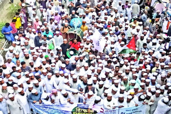 নারীবিষয়ক সংস্কার কমিশনের কোরআনবিরোধী প্রতিবেদন ও কমিশন বাতিল; সংবিধানে বহুত্ববাদের পরিবর্তে আল্লাহর ওপর আস্থা ও বিশ্বাস পুনর্বহাল; ফ্যাসিবাদের আমলে দায়ের করা সব মিথ্যা মামলা প্রত্যাহার, শাপলা চত্বরসহ সব গণহত্যার বিচার; ফিলিস্তিন এবং ভারতে মুসলিম গণহত্যা ও নিপীড়ন বন্ধের দাবিতে আজ শনিবার রাজধানীর সোহরাওয়ার্দী উদ্যানে আয়োজিত মহাসমাবেশ সফলের লক্ষ্যে বিক্ষোভ সমাবেশের আয়োজন করে হেফাজতে ইসলাম বাংলাদেশের পল্টন জোন।