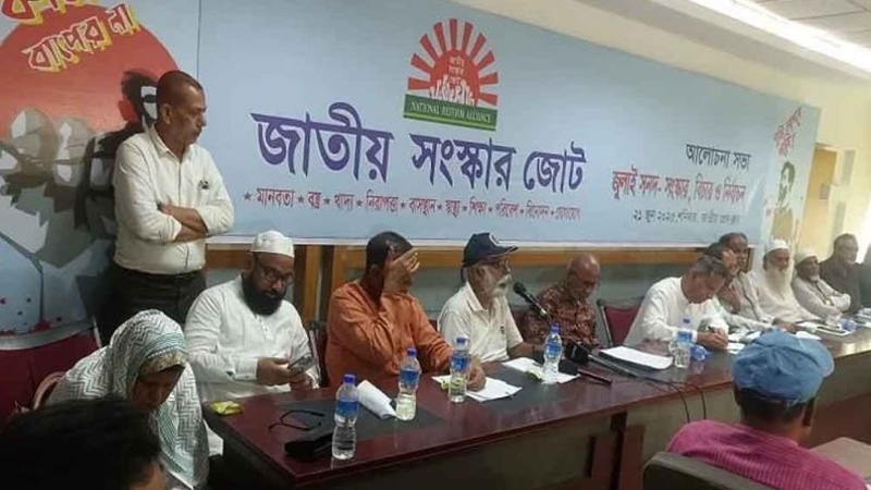সংস্কার ছাড়া কোনো নির্বাচন হতে দেওয়া হবে না বলে জানিয়েছে চারটি জোট ও ৩৫টি রাজনৈতিক দলের সমন্বয়ে গঠিত ‘জাতীয় সংস্কার জোট’। শনিবার জাতীয় প্রেস ক্লাবে আয়োজিত ‘জুলাই সনদ, সংস্কার, বিচার ও নির্বাচন’ শীর্ষক আলোচনাসভায় জোটের নেতা এ কথা বলেন।