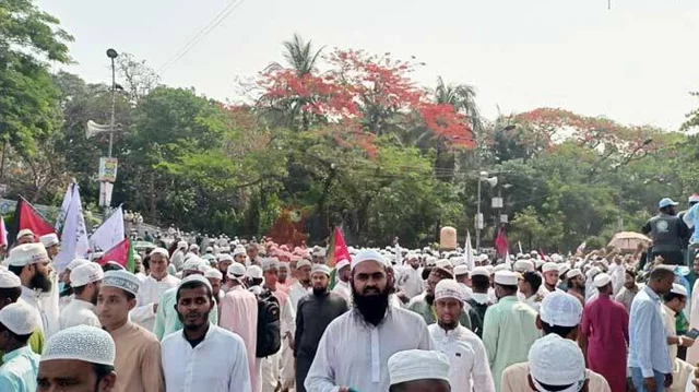 সমাবেশ শুরুর পর নেতারা বক্তব্য দিচ্ছেন। তারা নারীবিষয়ক সংস্কার কমিশনের কুরআন-সুন্নাহবিরোধী প্রতিবেদনসহ কমিশন বাতিল, সংবিধানে আল্লাহর ওপর পূর্ণ আস্থা ও বিশ্বাস পুনর্বহাল, আওয়ামী ফ্যাসিবাদের আমলে করা সব মিথ্যা মামলা প্রত্যাহার, ২০১৩ সালের পাঁচ মে শাপলা চত্বরে সংঘটিত গণহত্যাসহ সব হত্যার বিচার এবং ফিলিস্তিন ও ভারতে মুসলিম গণহত্যা ও নিপীড়ন বন্ধের চার দফা দাবি জানিয়েছেন।