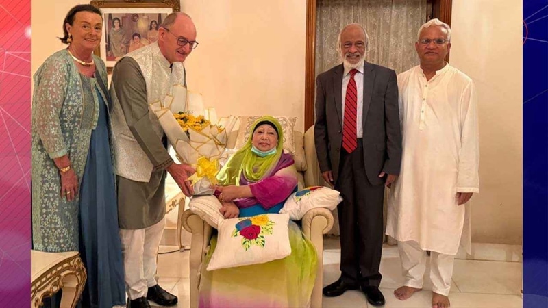 শুক্রবার (২০ জুন) রাত সাড়ে ৮টায় বিএনপি চেয়ারপারসনের গুলশানের বাসভবন ‘ফিরোজা’তে স্ত্রীসহ আসেন জার্মান রাষ্ট্রদূত।